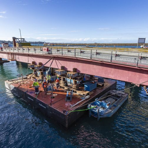 Ce succès opérationnel repose sur l’expertise d’un groupement d’entreprises spécialisées : ETPO (mandataire), Avenir Déconstruction (démantèlement) et Sarens (transfert nautique et ripage).