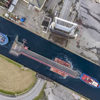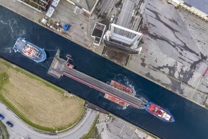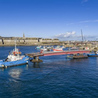 - Transfert maritime : Début décembre, la structure a été déplacée via les bassins à flot et l’écluse du Naye, sous la supervision des pilotes du port et avec l’appui des remorqueurs du concessionnaire EDEIS.